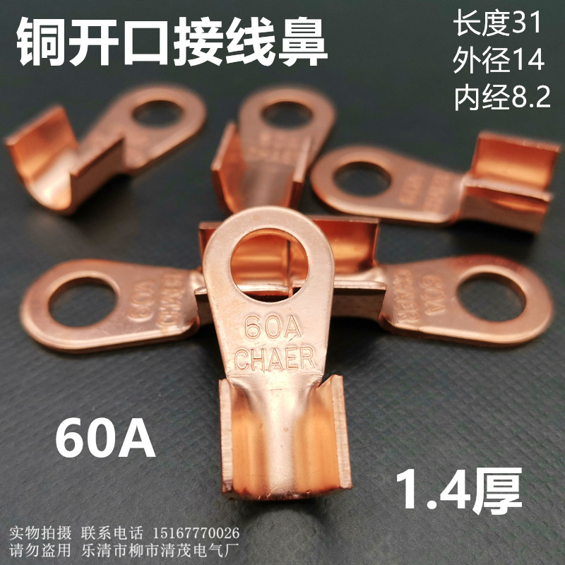 OT copper opening junction nose 60A copper terminal junction nose copper national standard round thickened terminal copper nose