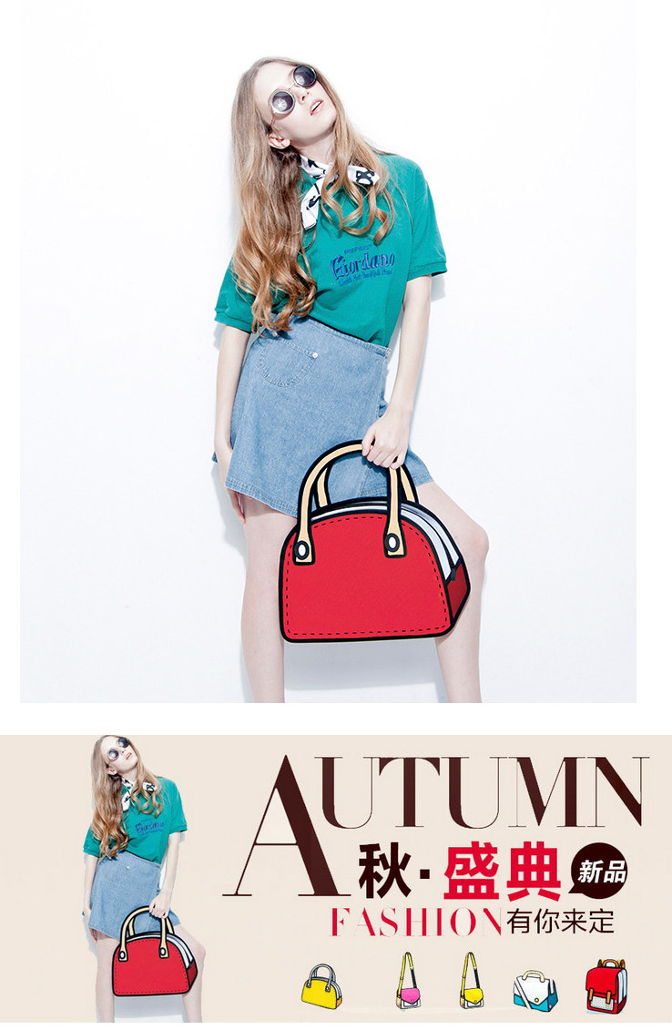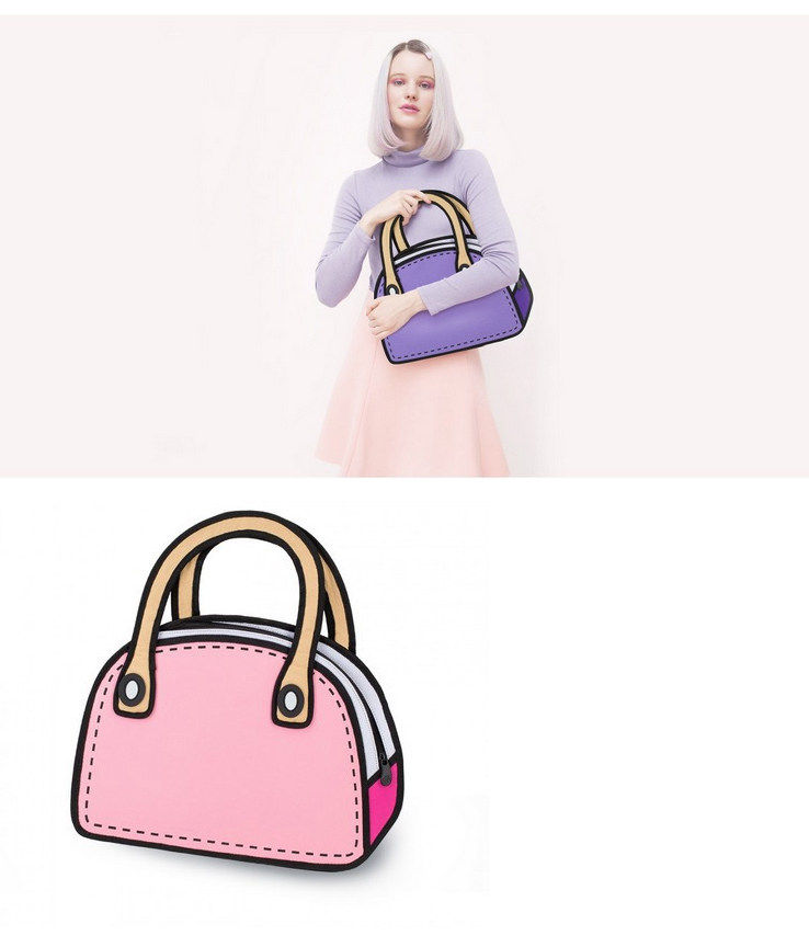Fashion personality trend funny Taiwan cartoon portable creative bag 3D three-dimensional bag 2D two-dimensional cartoon bag new