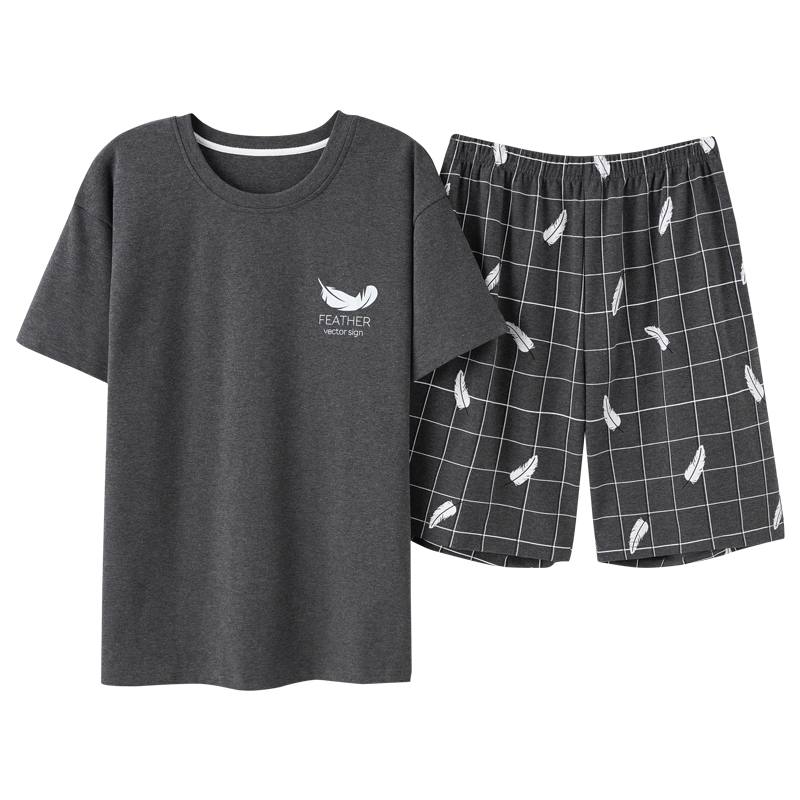 Nanjiren summer pajamas men's short-sleeved cotton thin two-piece suit youth large size spring and summer home service