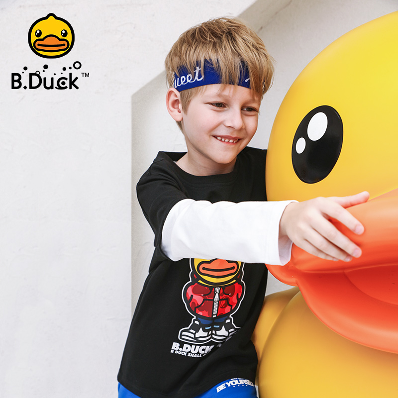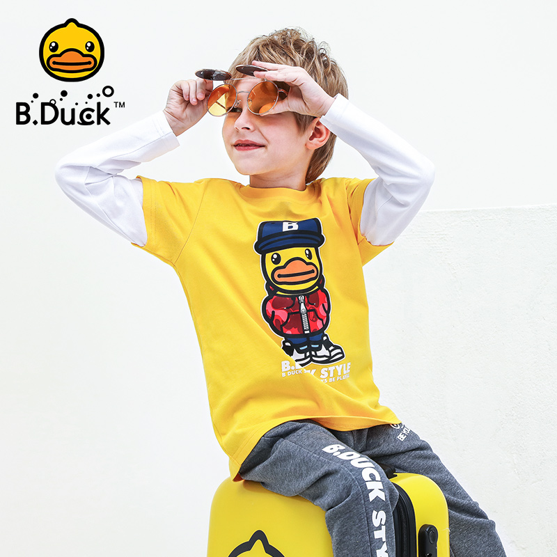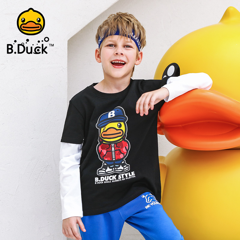 B Duck little yellow duck children's clothing boys t-shirt 2020 autumn new children's long-sleeved fake two-piece children's tops