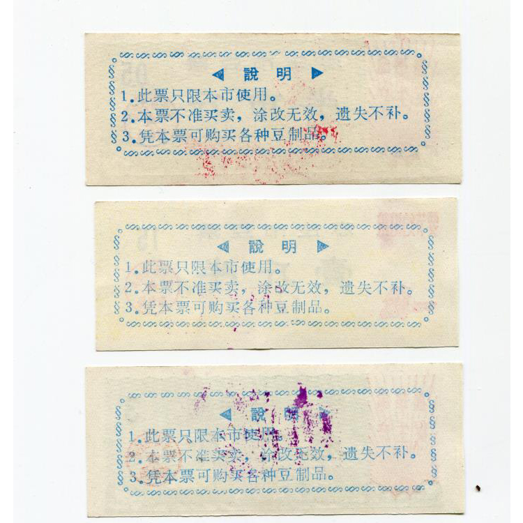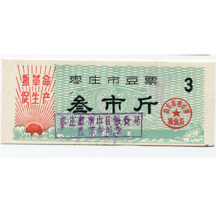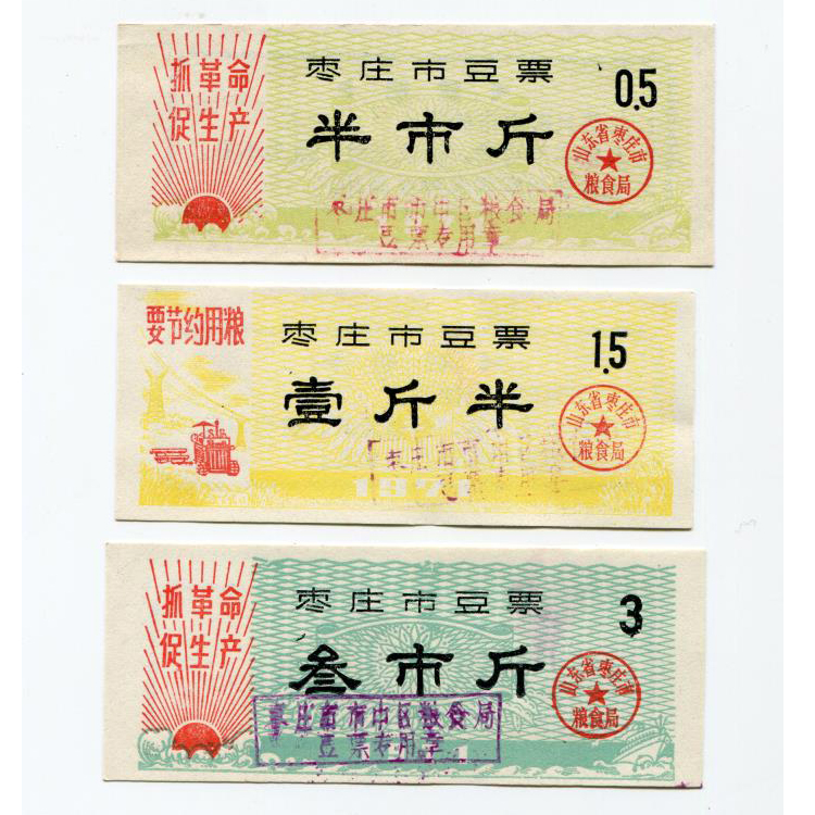 (Variety of Lingui)) In 1971, Zaozhuang City bean ticket, Shandong Province, three full set of 9 5 grain tickets