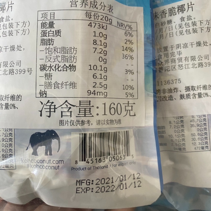 Shanghai Spot Costco opens the market guest Thailand imports Koh Cool Coconut Coconut Crick original 320g