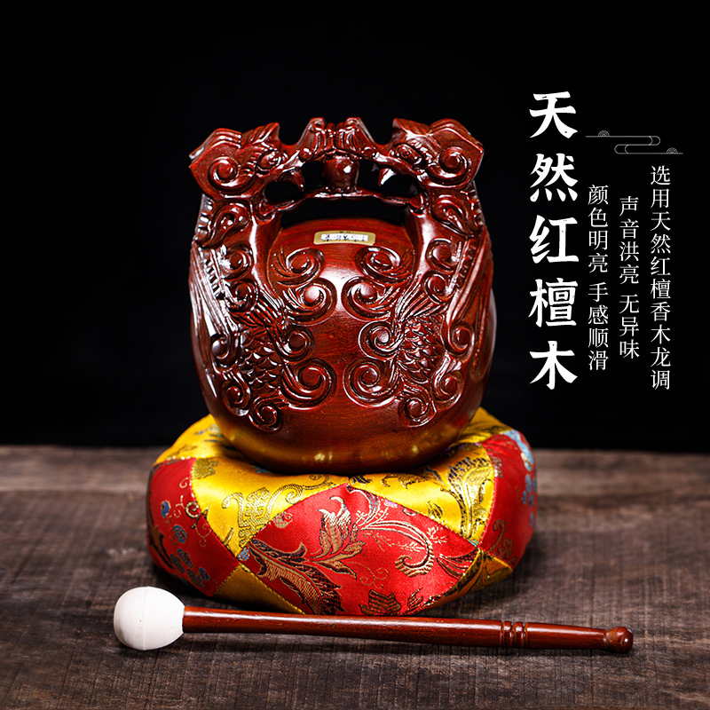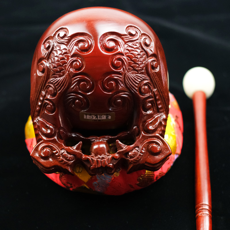 Boneng Round Sandalwood Percussion Musical Dragon Sculpture Taiwan Red Honolulu Carved Fish