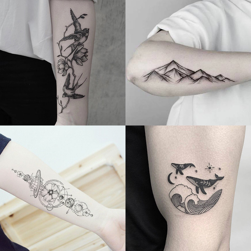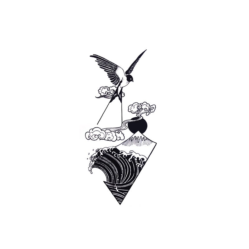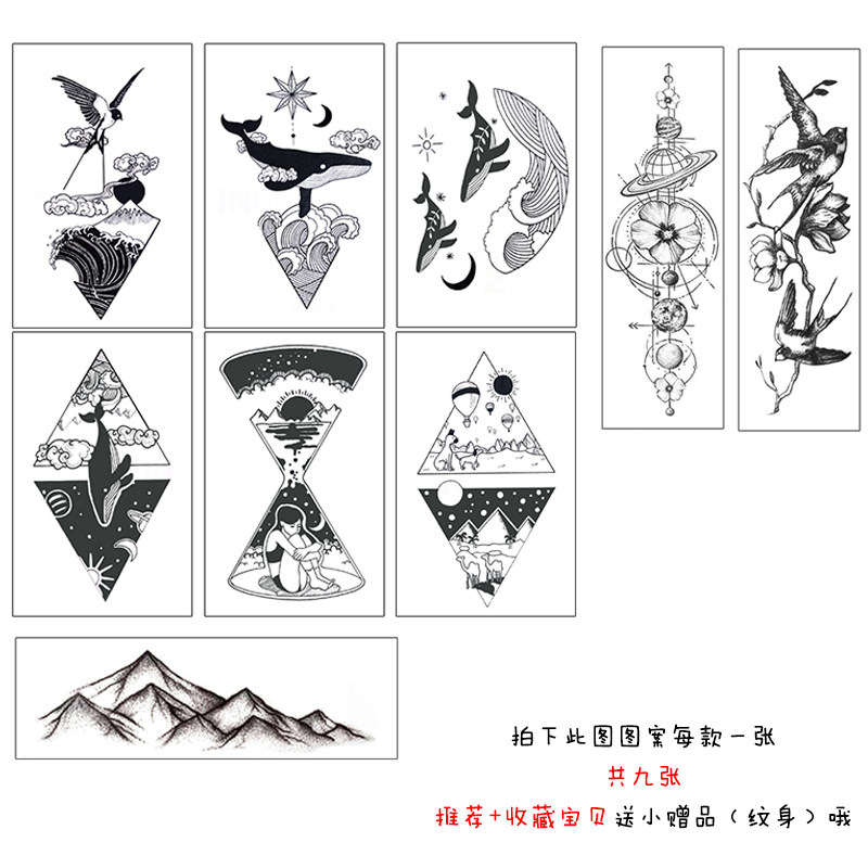 Chaori system INS wind dark black black and white Ukiyo-e geometric tattoo stick waterproof female lasting simulation sexy Korea