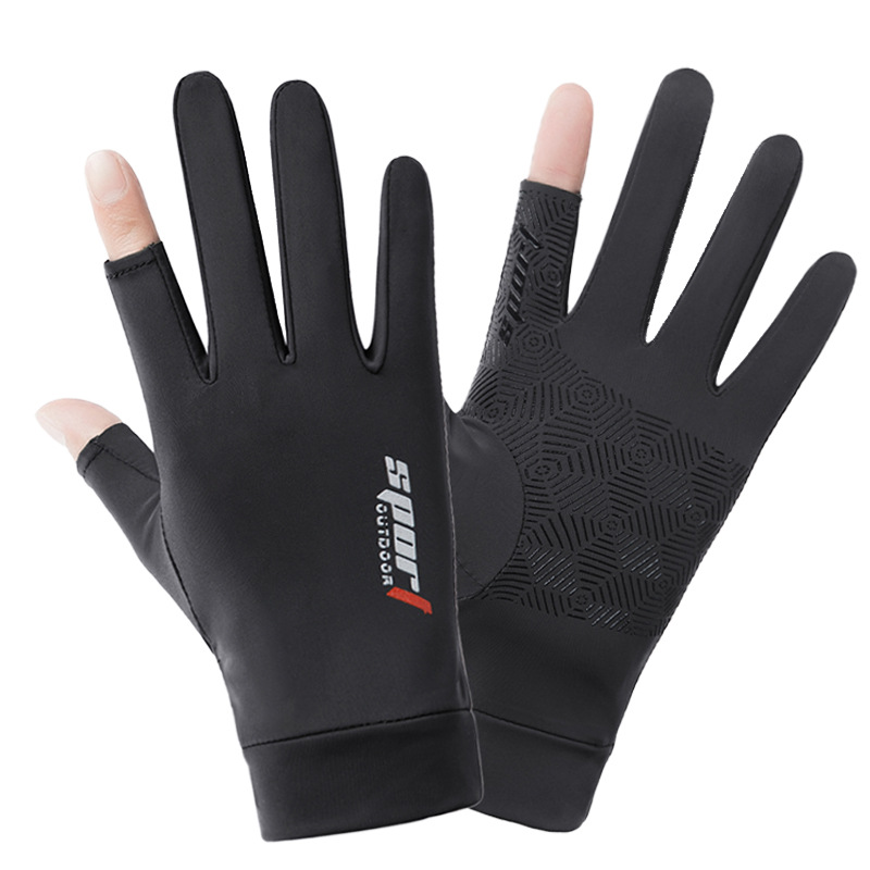 Full finger Hide Cyan Grey Ice Silk Half Finger Woman's missing Two-finger Pink Hide Cyan Ice Silk Half Finger -1 and -2 refers to the glove's palm anti-slip slightly less the same as everything else is just as gray