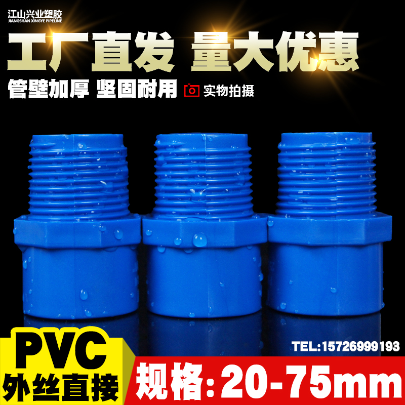 PVC water supply pipe outer teeth direct straight-through outer wire joint 20 25 32 40 50 63 75 white blue gray screw