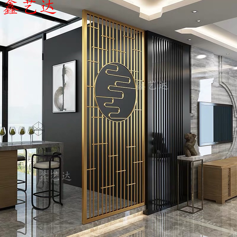 Decorative entrance door partition entrance new Chinese style style design titanium entrance LED stainless steel art glass screen