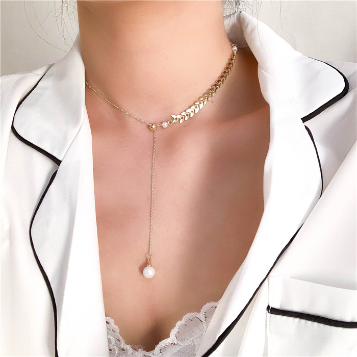 Japanese and Korean niche design pearl necklace female tide net red ins collarbone chain sweater chain long version all-match simple accessories