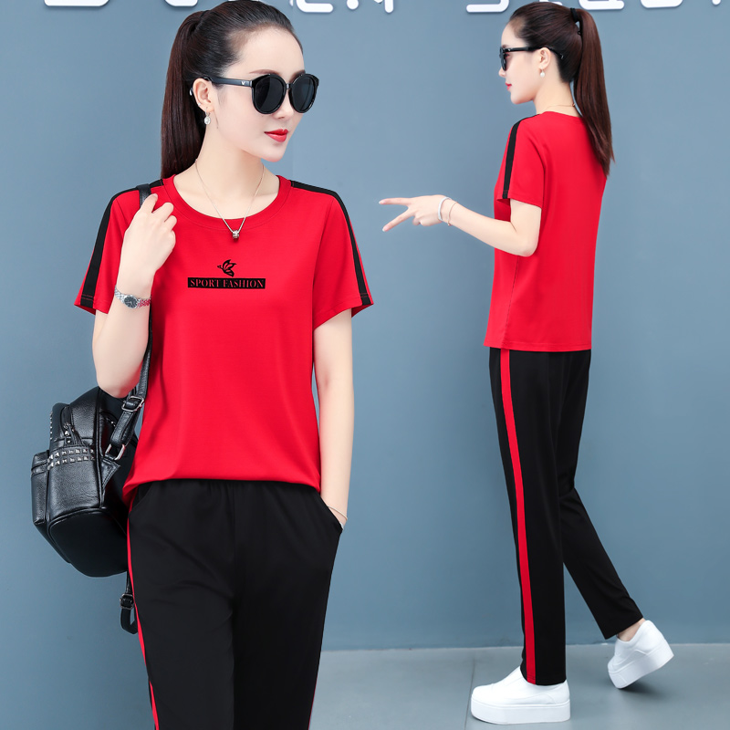 Pure cotton casual sports suit female summer large size loose middle-aged mother spring and autumn 2022 new two-piece Western style