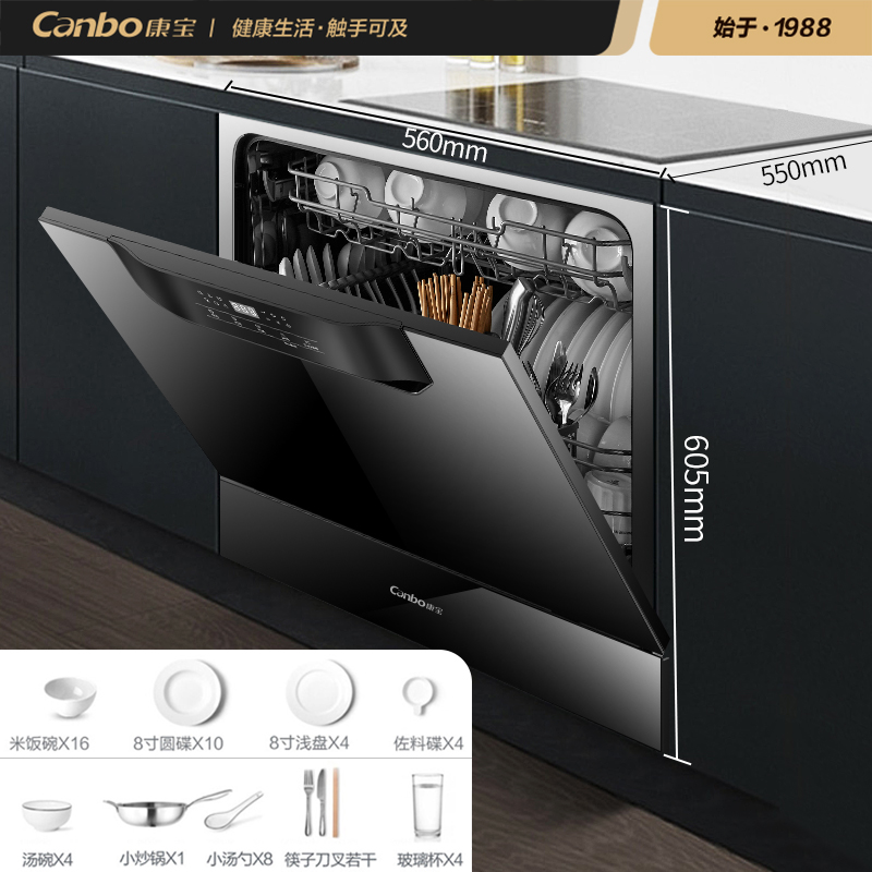 Kangbao XWJ8-QC4 (X100)dishwasher automatic household integrated dishwasher small embedded 8 sets