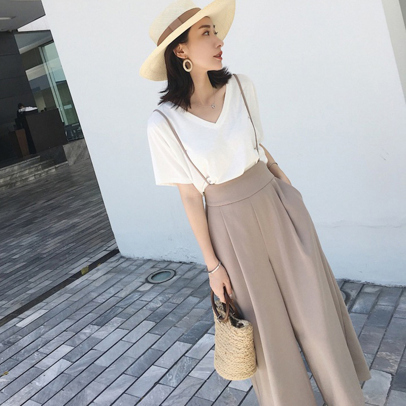 Light-cooked windward sister name Yuanyonnet red with two sets of damp and small sub-foreign-style cuddling bag wide leg pants suit summer