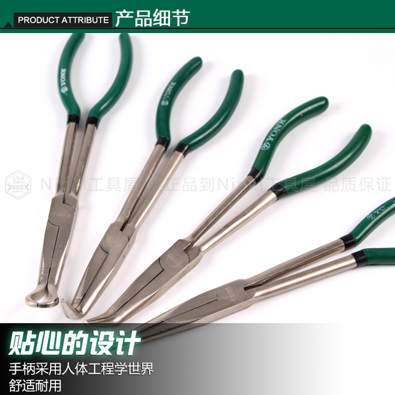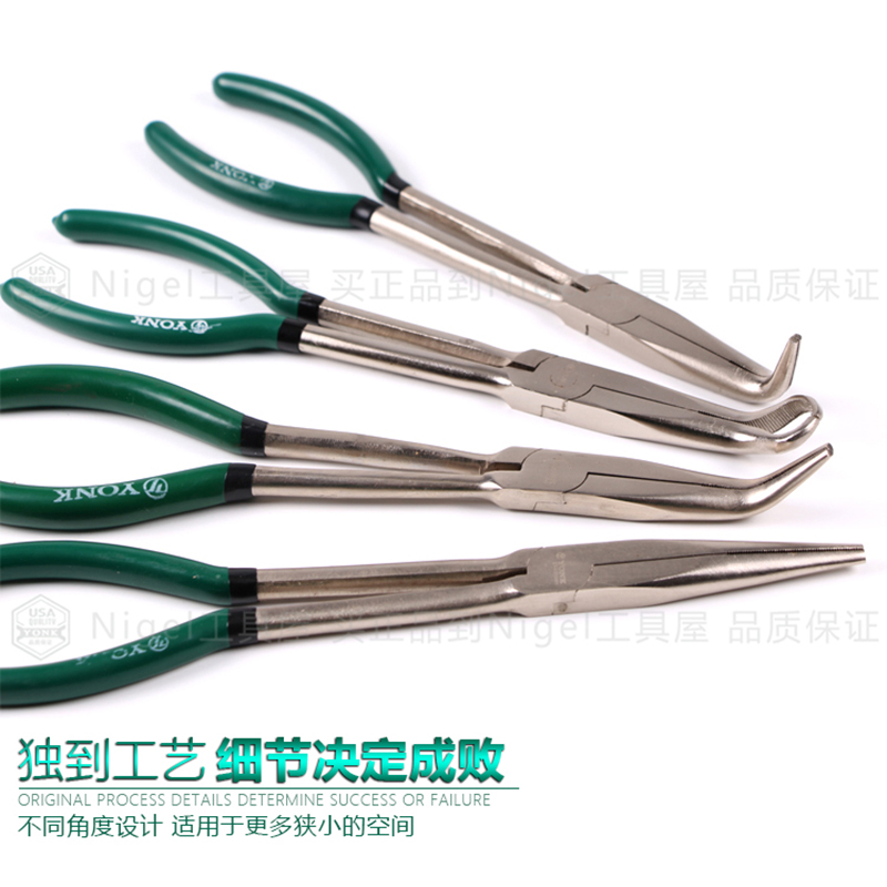 York lengthened long-length shank sharp-tip pliers 45 90-degree elbow-head clamping tip pliers O-type garbage pliers