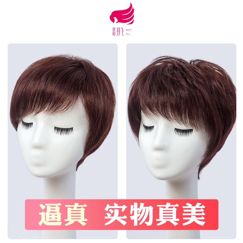 Middle-aged wig short hair short hair naturally Mother fashion full head set real hair wig