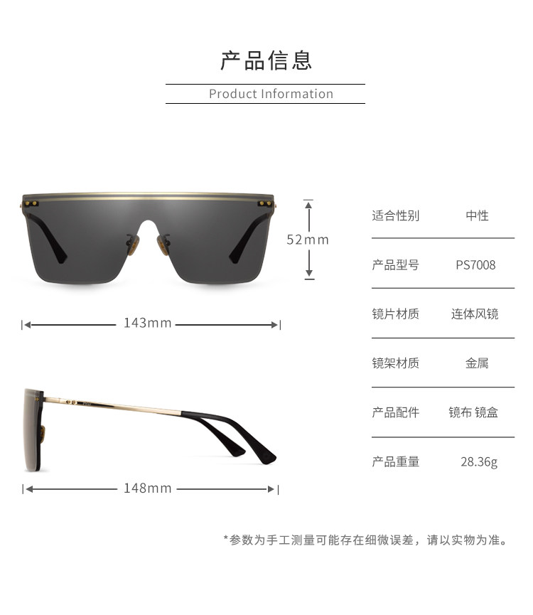 Pasha glasses trend men's and women's fashion big frame personality one-piece sunglasses posing square frame thin face sunglasses