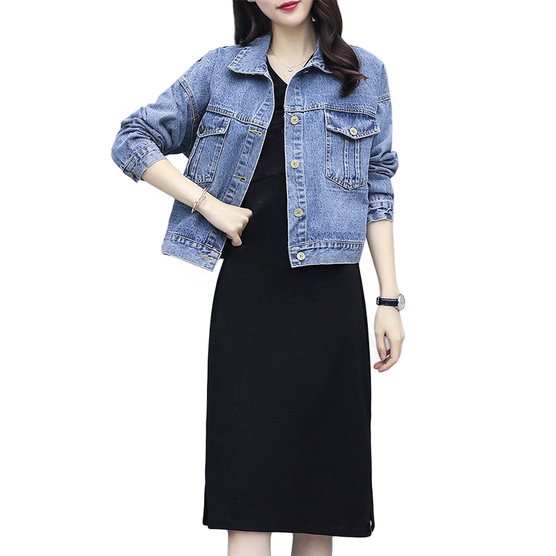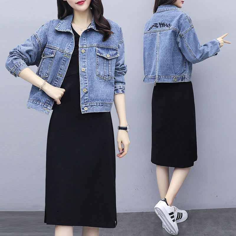 Large size women's clothing 2022 spring and autumn new fat sister cowboy coat Yang Pi age two piece dress woman
