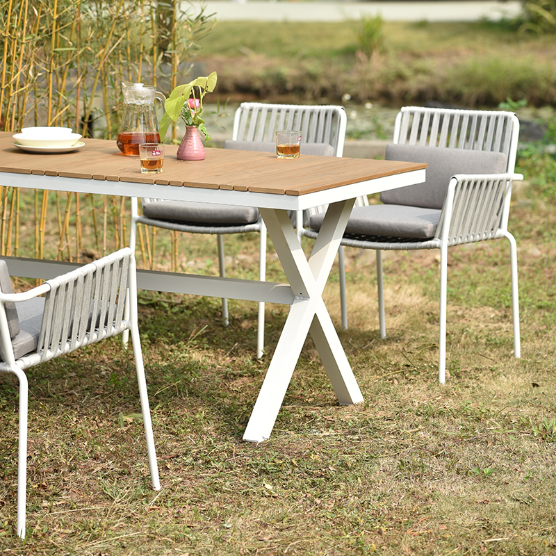 Technological wood 1 6-meter long table Kate chair 4 pieces Technological wood 1 6-meter long table Ya rattan chair 4 1 2-meter rock board long table Kate chair 4 black 0 8-meter rock board square table Kate chair 4