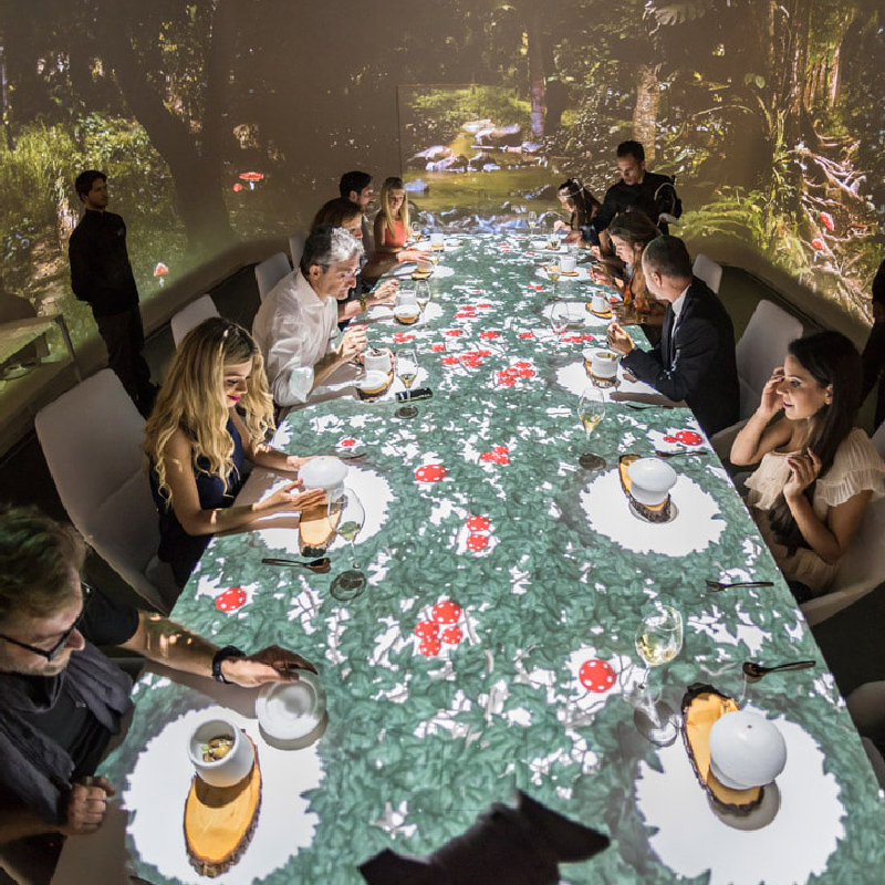 3D holographic projection table dining room sensory equipment interactive 5D desktop immersive fusion software wedding material