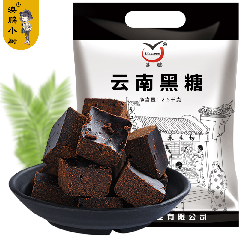 True 5 pounds of brown sugar Yunnan authentic sugar cane brown sugar blocks pure ancient handmade soil old black sugar brown sugar brown sugar 2500g