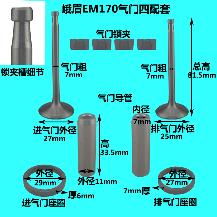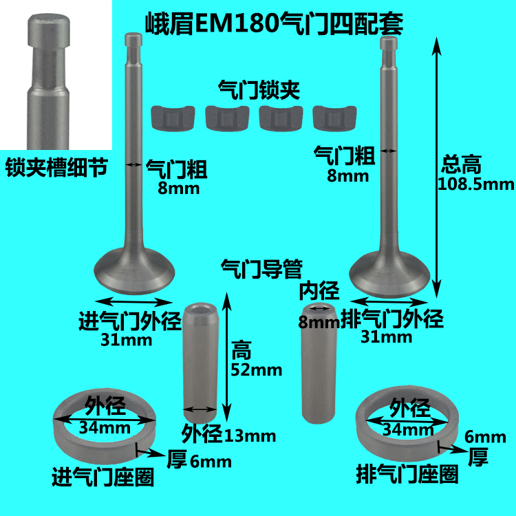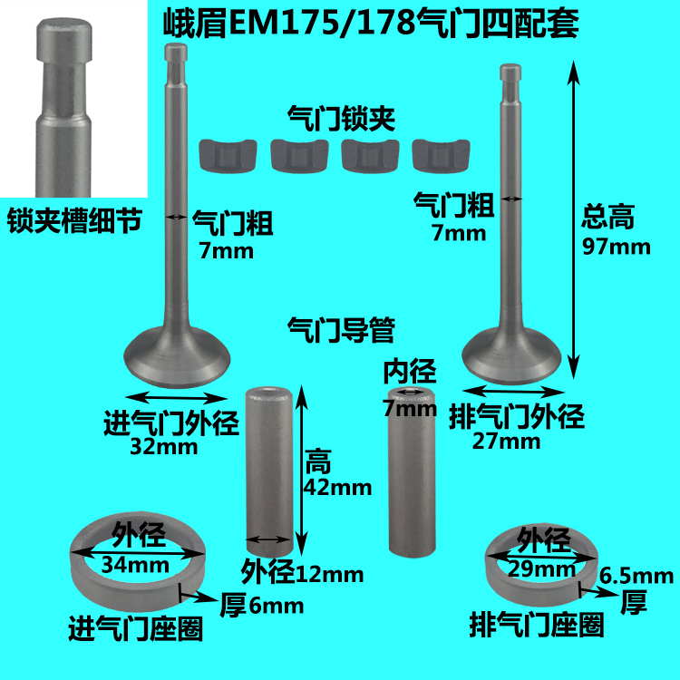 Emei water-cooled single cylinder diesel engine EM170 175178180 valve four assorted valve assembly catheter