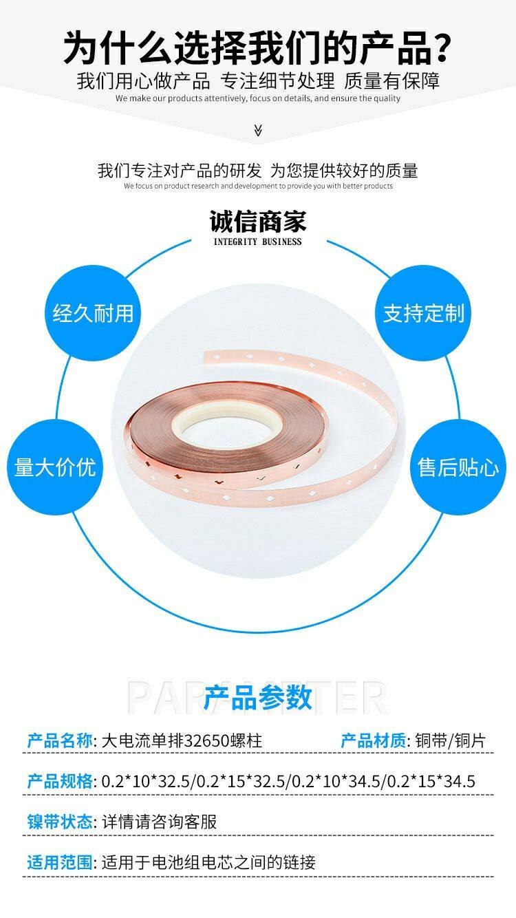 32650 Connector Lithium iron phosphate Styl battery 0 2*15 Large current pure copper connector T2 copper belt