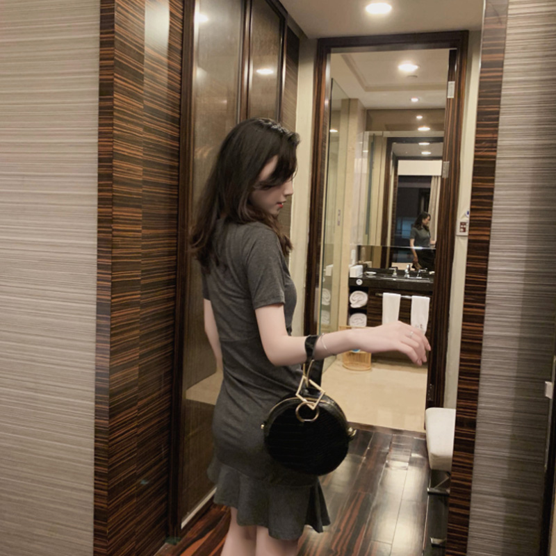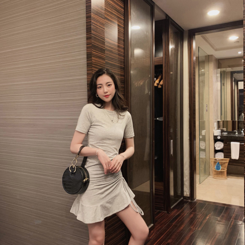 Summer 2022 new niche design feels a step of wrapped skirt by skirt leaf fold short - sleeve tail dress