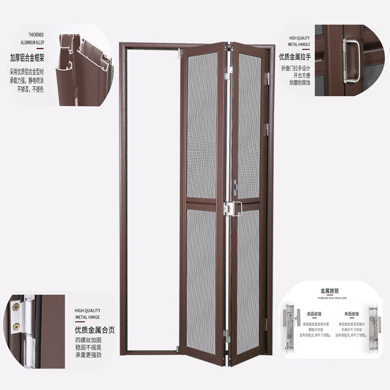 Champagne color folding yarn door Dark gray folding yarn door Coffee color folding yarn door Milk white folding yarn door Wood grain color folding yarn door Default to the lower rail, no need for lower rail please contact customer service remarks Standard double-sided press lock, need single-sided lock contact customer service remarks The above is a square price 2 folding yarn door 1.6 square or less 3 folding 2.4 square or less beat Standard 06 diamond mesh upgrade 08 plus 30 yuan Diamond mesh has a white black silver gray configuration key lock 50 yuan