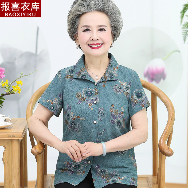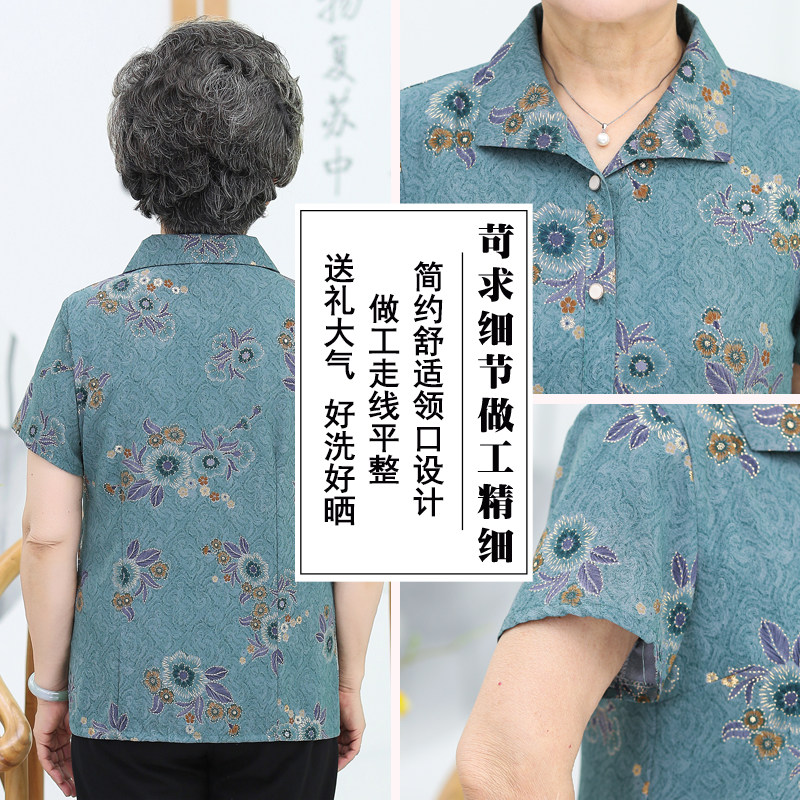 Middle-aged and elderly Xia loaded female short sleeve T-shirt 60 years old and older clothes mother suit mother-in-law-grandmother-in-law