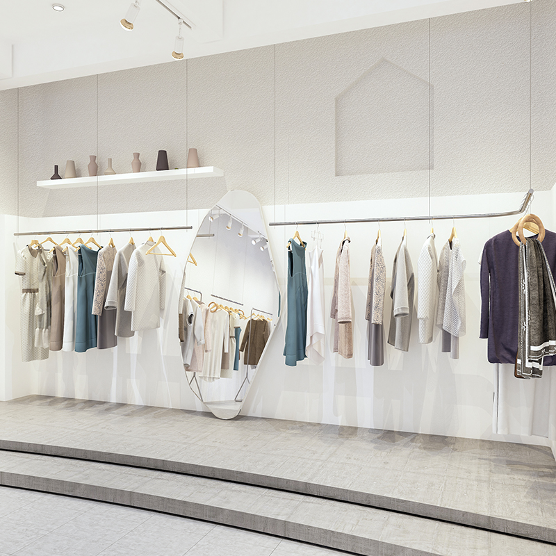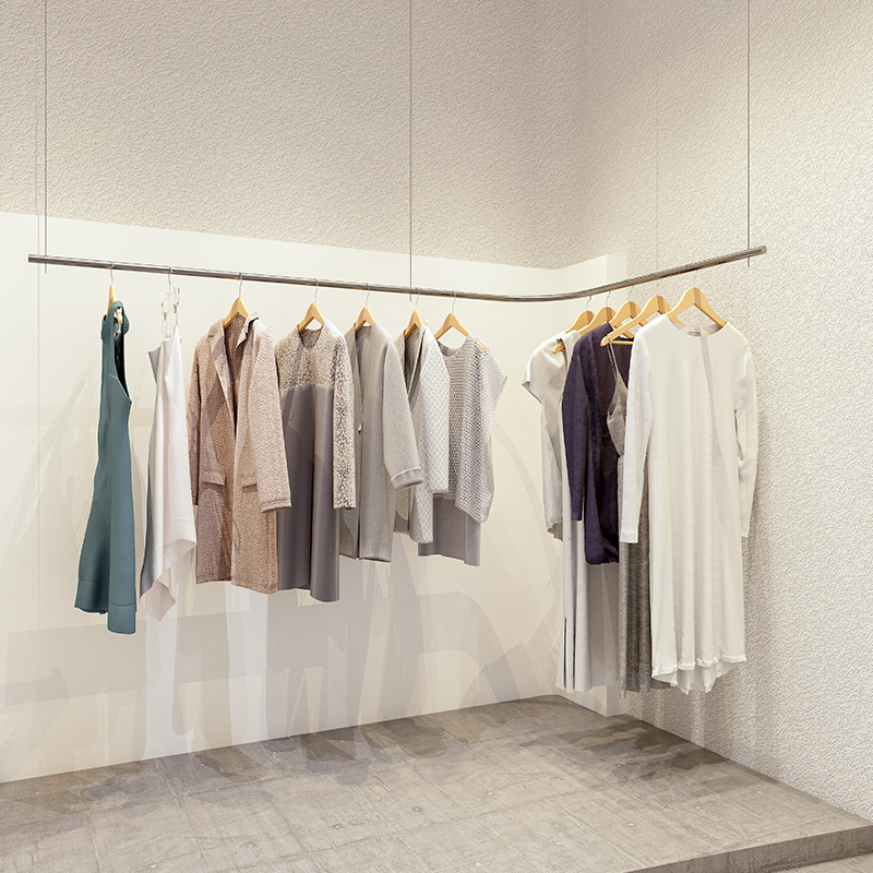 Fashion high-end silver clothing store display rack women's hanging ceiling hanging hanger on the wall Stainless steel hanger hanging rod
