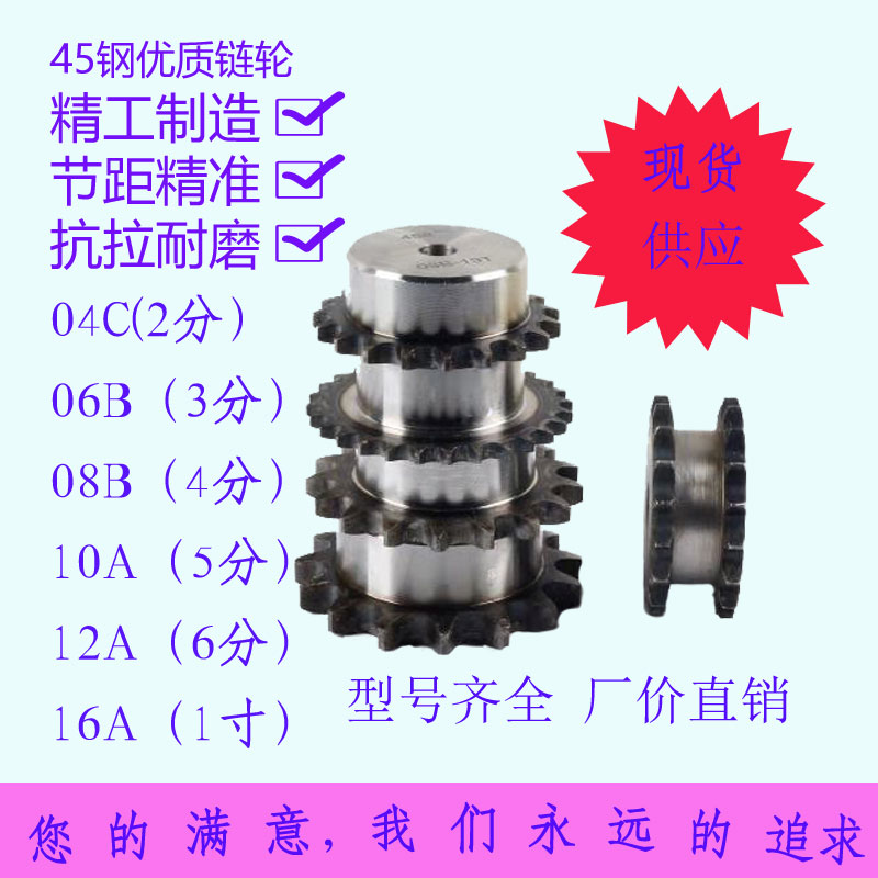 45 steel large step single row chain wheel 3 points 06B-10 teeth -60 teeth inner hole machined mask machine sprockets Self-strengthening chain