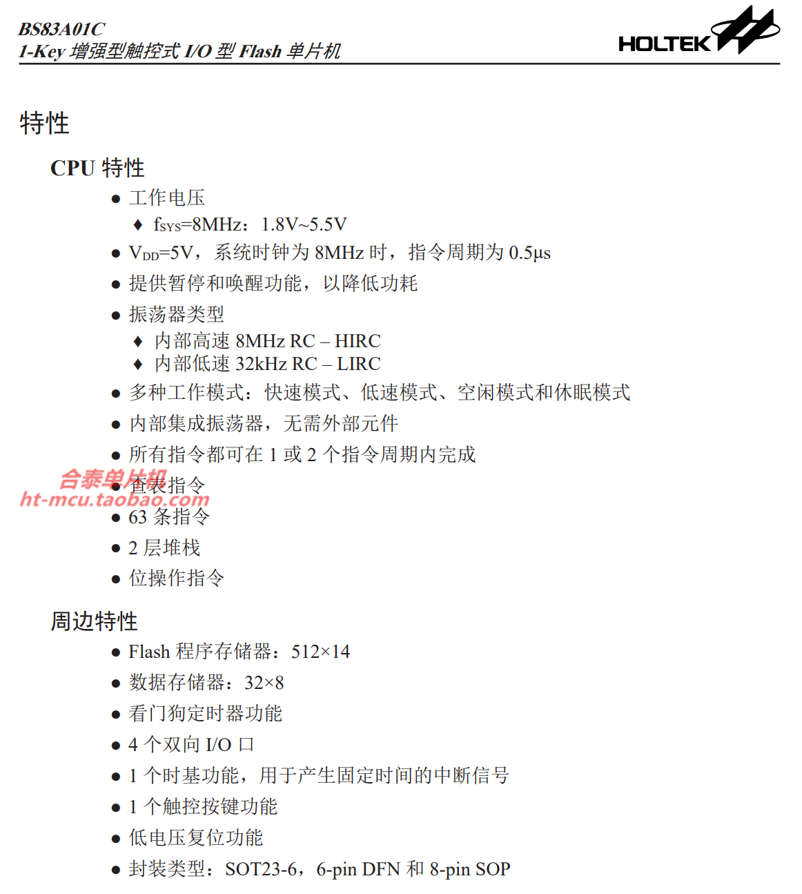 Taiwan Hetai Original Dress BS83A01C 8SOP 1 Key Single Bond Capacitive Touch Key Single Wafer Generation Burn