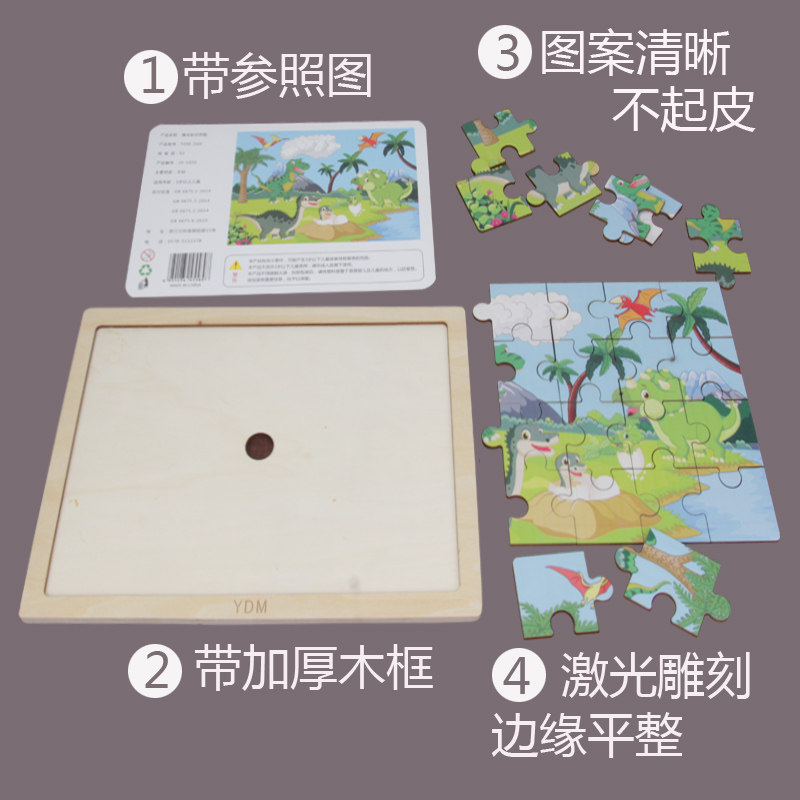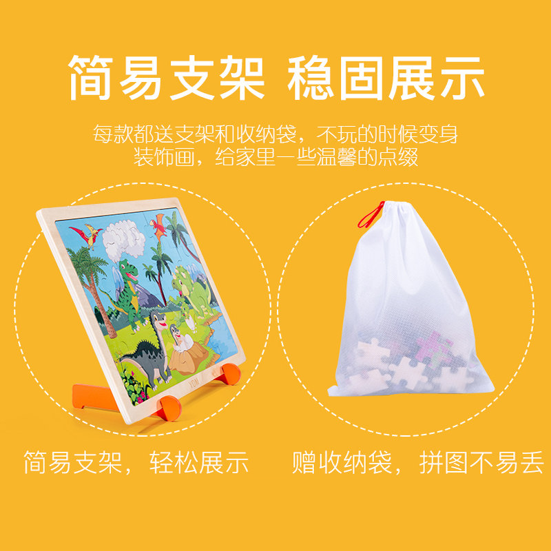 Puzzle Child 2 year old baby wooden dinosaur transport 100 tape frame 3-5 - 6 years old boy and girl