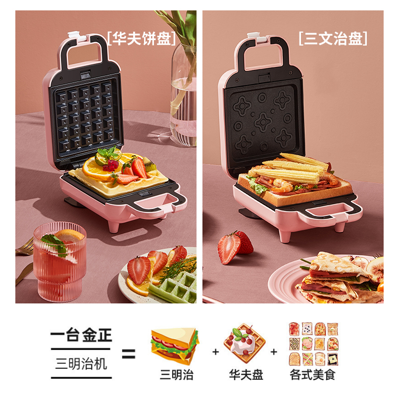 Jinzheng sandwich machine Household small multi-functional breakfast light food machine Double-sided heating electric baking pan press toast machine