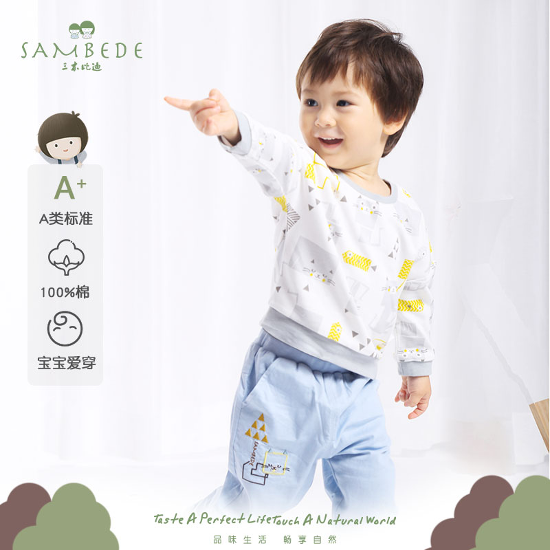 Three-wood bidy boy's baby long sleeve T-shirt undershirt spring autumn season children's baby clothes for children's autumn clothes