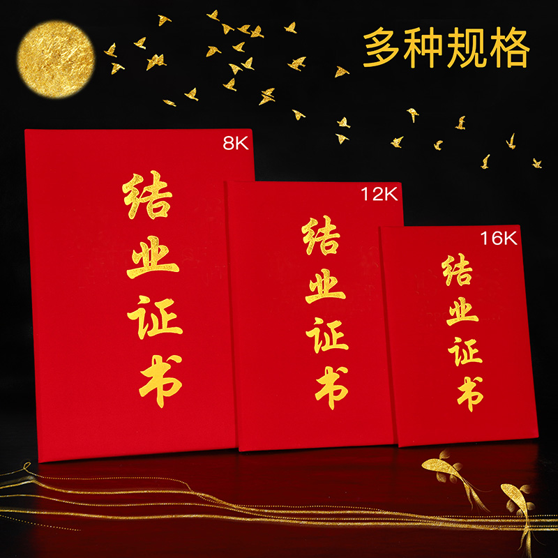 Red Velvet Cloth Graduation Certificate Housing Cover Customized Honors Certificate Custom Enterprise School Awards Award-winning Certificate Awards LOGO A4 Inner core bronzing 6K8K12K printing