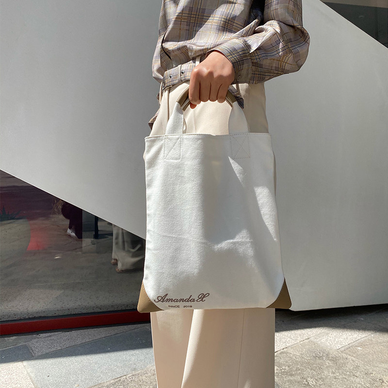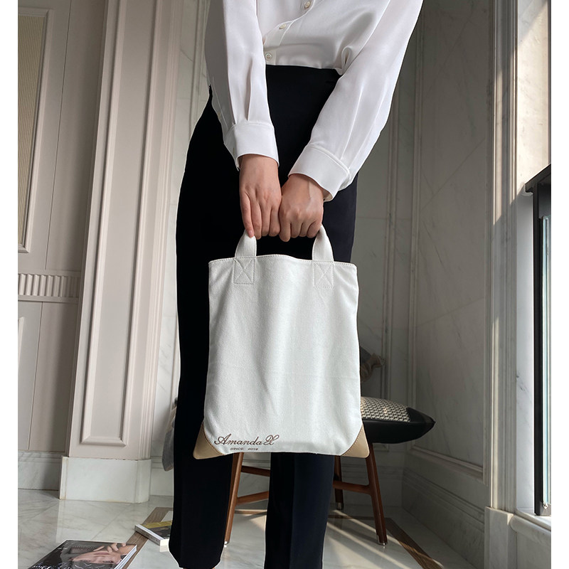 AmandaX Classic hand-held canvas bag embroidered patchouled sheepskin eco-friendly canvas tote bag