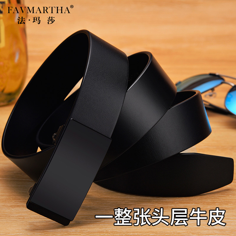Headlayer cow leather strap men genuine leather toothless automatic buckle belt business luxury pants with damp young people