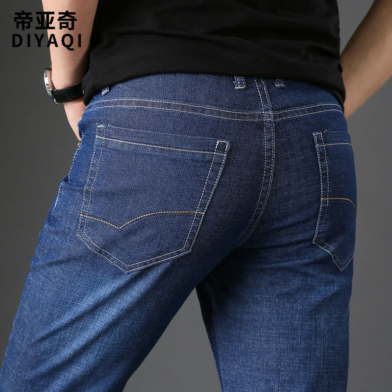 Dad Long Pants Spring Summer Season Jeans Men's Middle Aged Slim Fit Straight Drum Elastic Casual Middle-aged Seniors Spring And Autumn Clothing Men's Pants