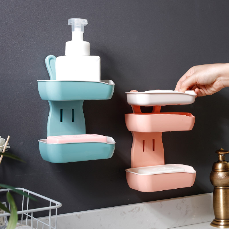 Creative double-layer box Wall-mounted non-perforated non-marking paste powder room household fat box drain incense box frame