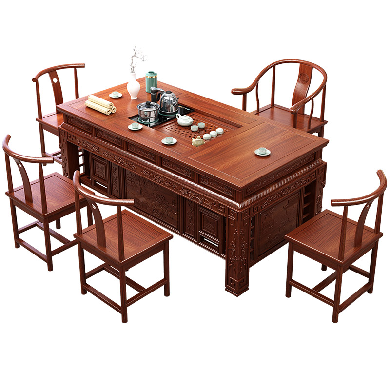 Tea table and chair combination solid wood kung fu tea table simple tea table antique Chinese style 18m tea table office drinking tea table