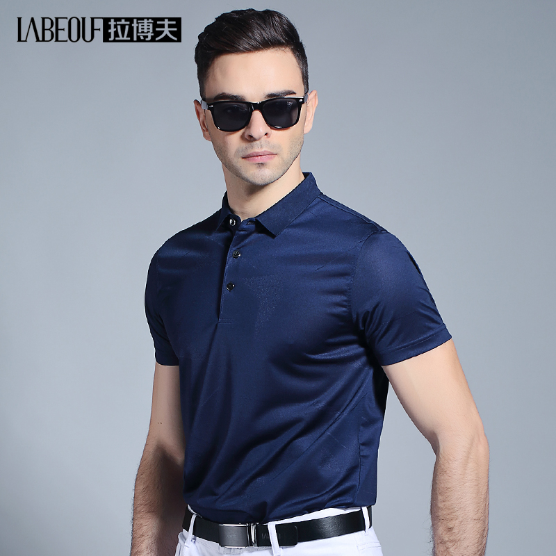 Labov Pure Color Mulberry Silk Short Sleeve T-shirt Male Middle Summer New Pint Loose Business Casual Polo Shirt
