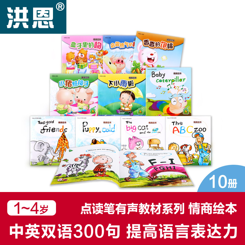 Hong En Point Reading emotional quotient plodding Chinese and English bilingual point reading pen matching early childhood teaching children teaching materials 1-4 years old