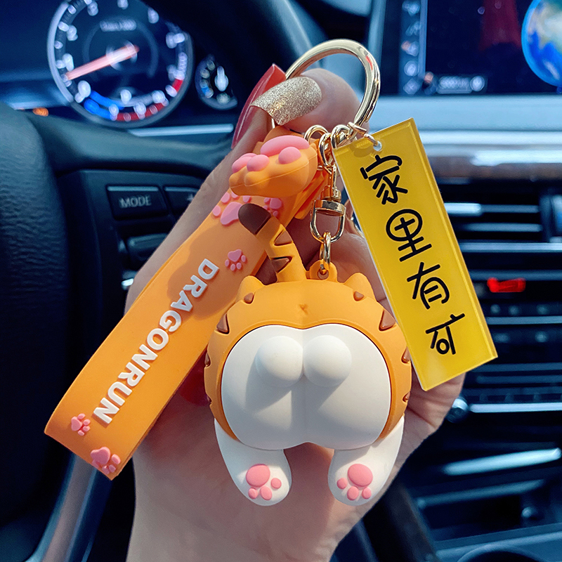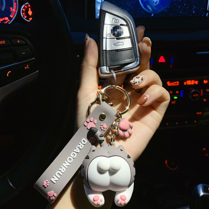 Cartoon keychain female cute cat ass net red car key pendant Creative school bag pendant ins tide key chain