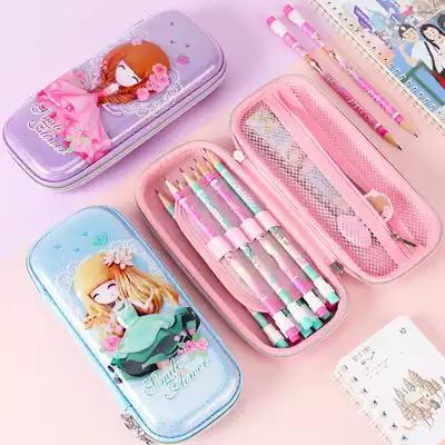 Flower girl pencil case female simple kindergarten children's stationery box Primary School students cute girl multi-function large capacity ins tide girl heart night glow Princess cute anime girl high value