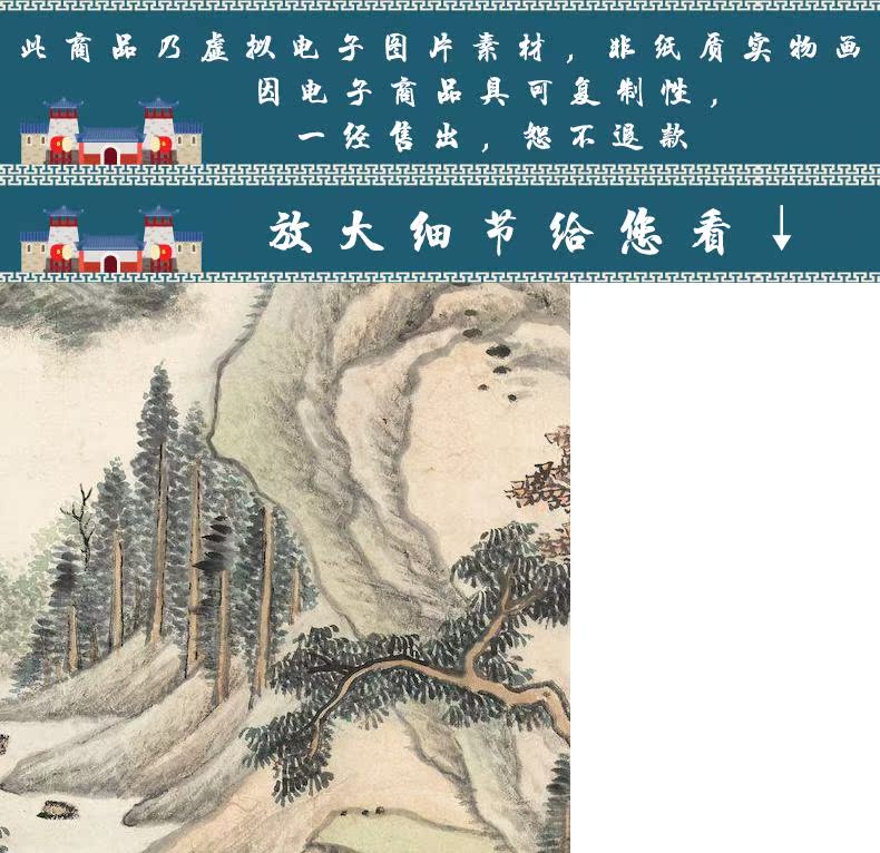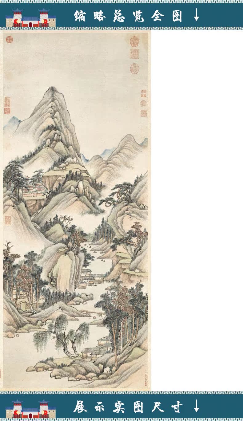 Qing Dynasty Aixinjueluo Yongrong "Painting Autumn Temple Mingquan Axis" electronic picture decoration spray painting identification copy material