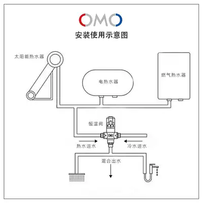 OMO all copper 4-point thermostatic valve mixing valve open solar water heater temperature control valve shower faucet pipe valve
