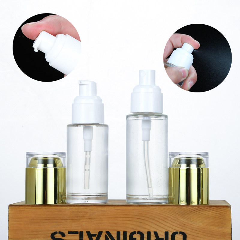 Transparent golden acrylic cover glass cream bottle empty bottle spray lotion bottle cosmetic packaging press toner bottle