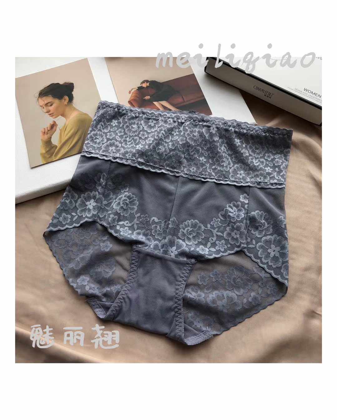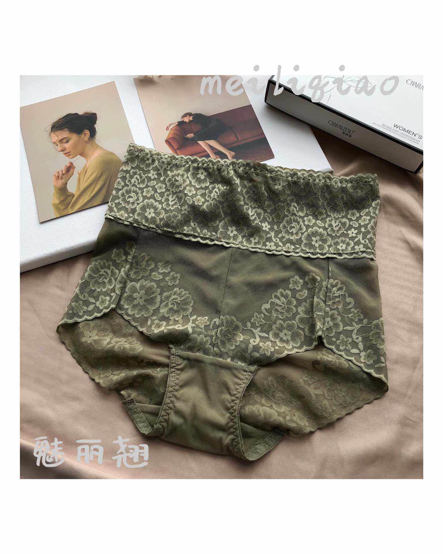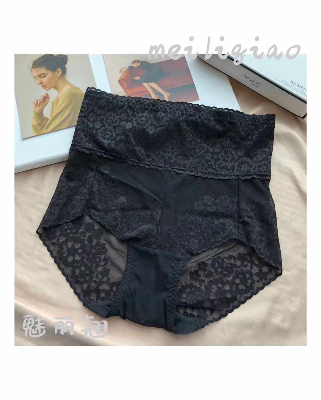Charming Lace Large Size Lace High Waist Abdomen Hip Lifting Shape Breathable Comfortable Traceless Ladies Cotton Antibacterial Panties Women