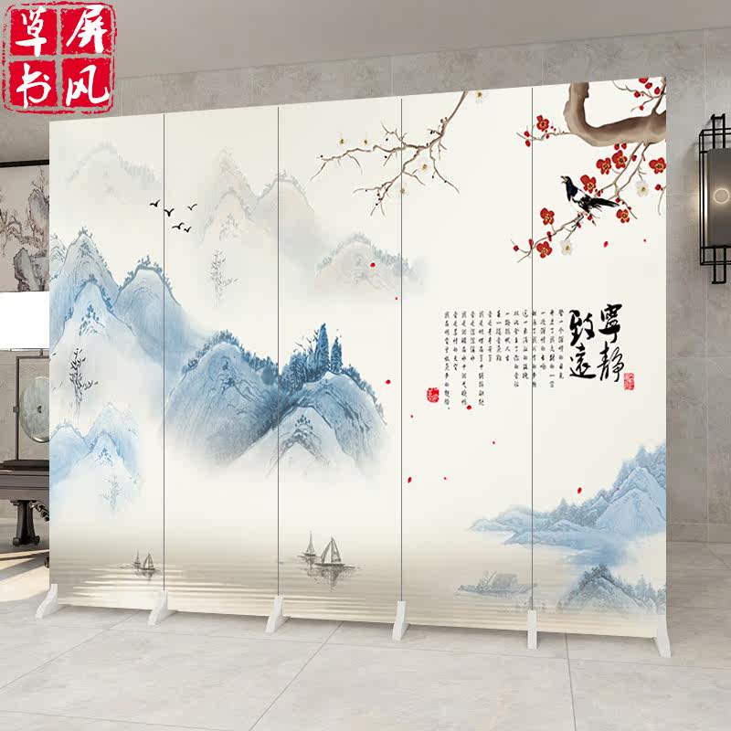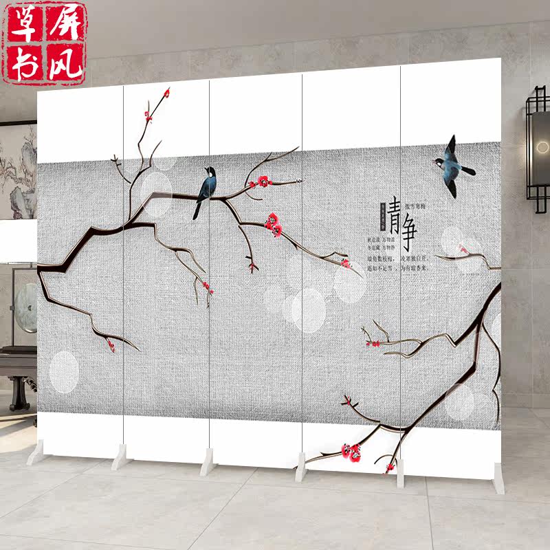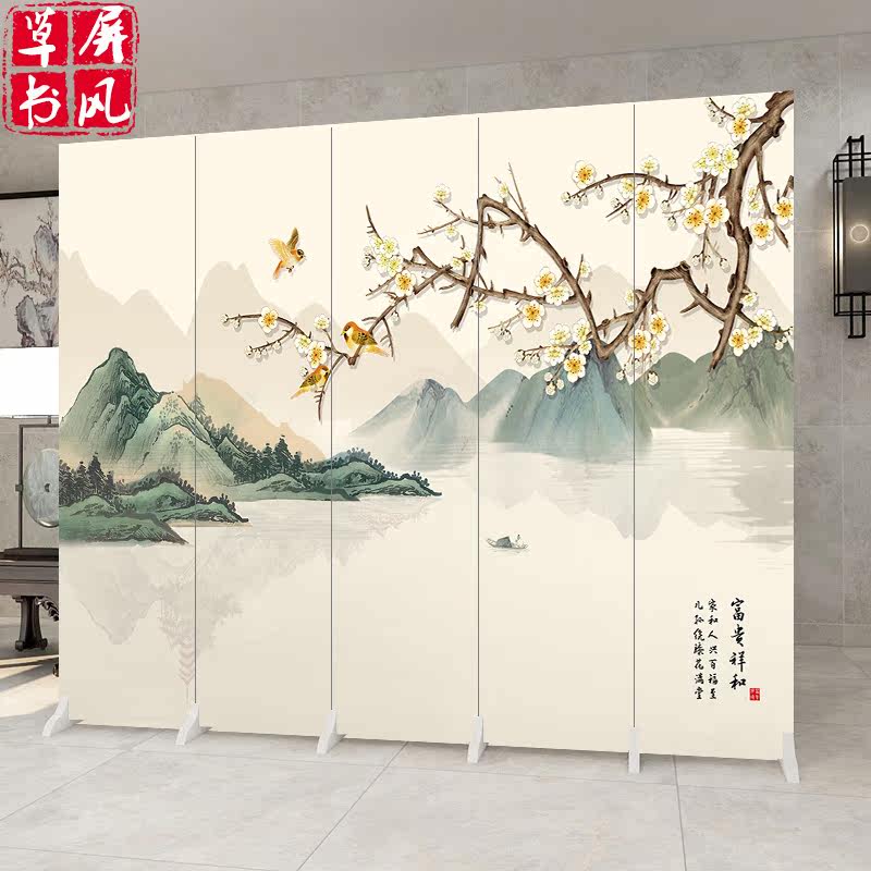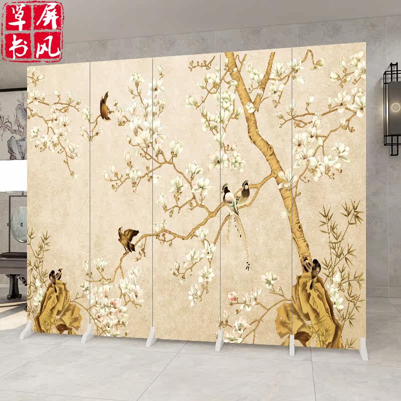 New Chinese Screen Partition Living Room Genguan Folding Mobile Office Landscape Flower Bird Bedroom Shelter Home Fold Screen