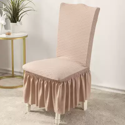 ㊣Modern and simple golden needle jacquard skirt chair cover cover thickened household one-piece dining chair Hotel chair cover stool cover