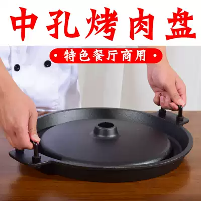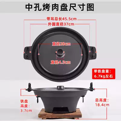 Cast iron middle hole barbecue plate(single iron plate) Cast iron middle hole barbecue plate large meat clip large oil brush silicone anti-scalding gloves A pair of cast iron middle hole barbecue plate Cast iron carbon stove Cast iron middle hole barbecue